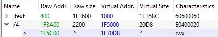- Calculate the virtual address of the RWX section using the module base address and RVA of the target section.